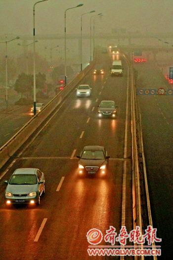 15日上午9點,濟南經十路暗如黃昏!”緢笥浾摺≈芮嘞取z
