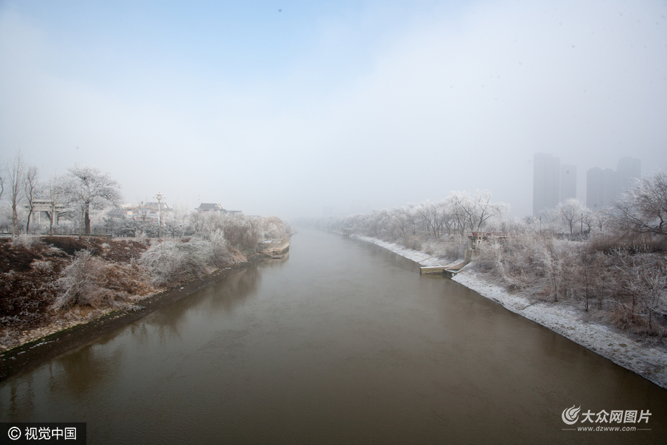 2016年12月29日,山東德州,一場(chǎng)奇美的霧凇將中國(guó)大運(yùn)河兩岸妝扮的玉樹(shù)瓊枝、異常漂亮。圖片作者:周建新/視覺(jué)中國(guó)