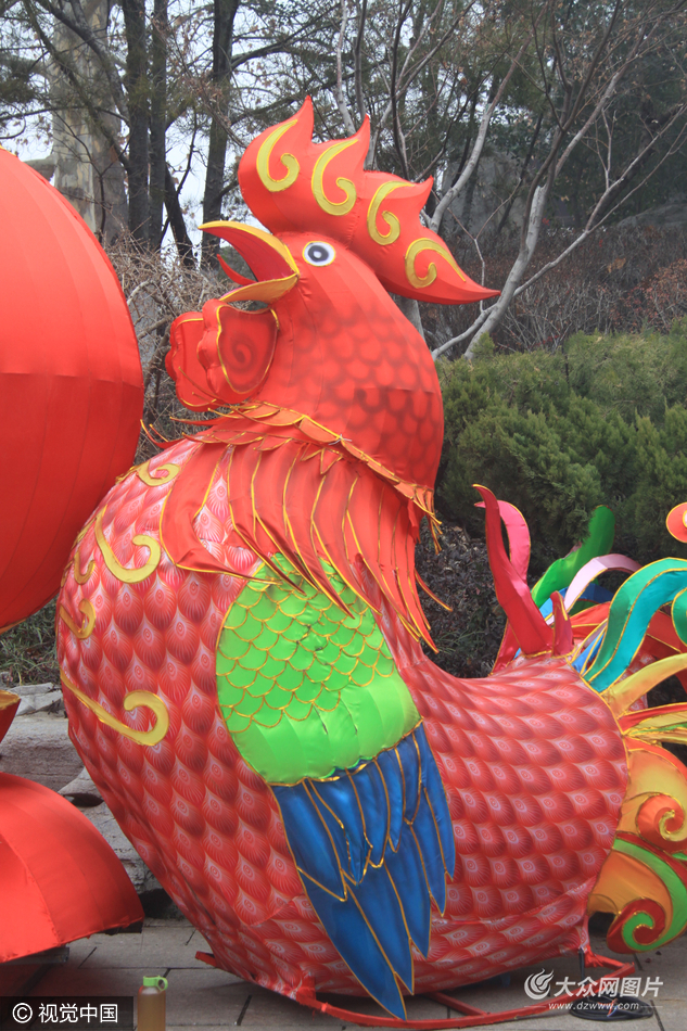 2017年1月2日,在濟南趵突泉景區(qū)內(nèi),來自四川的花燈工匠開始安裝2017新春花燈。據(jù)了解,今年趵突泉燈會主題是“鳳舞吉年,春滿泉城”,主題燈有45組,雞年來了,造型各異的雞的圖形開始現(xiàn)出雛形,吸引不少游客的眼球。