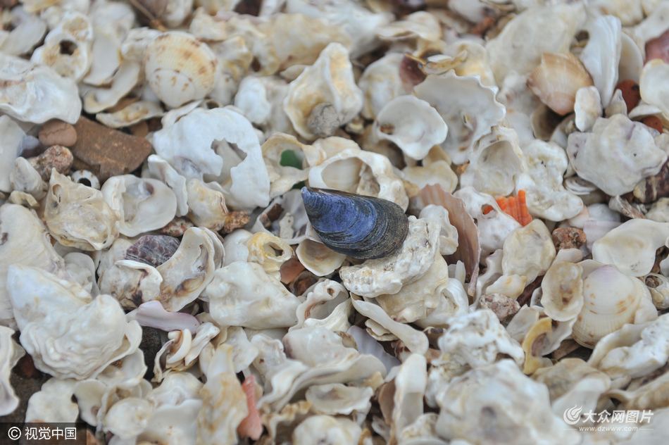 據(jù)了解,這些貝殼來自岸邊附近的礁石,由于常年受到海浪沖擊,一點點剝離,并被潮水推向岸邊,日積月累形成現(xiàn)在的貝殼海灘。