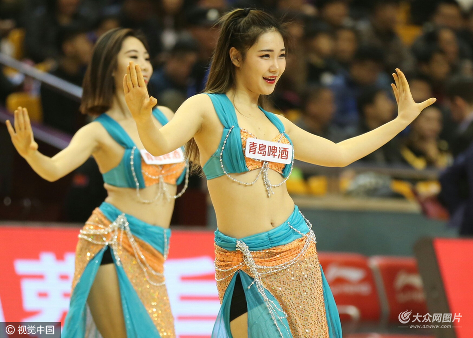 2017年1月11日,山東省濟南市,山東濟南省體育中心舉行山東高速vs浙江稠州銀行比賽。性感籃球?qū)氊悷嵛柚䴙橘悎鲞\動員加油助威,場下休息時籃球?qū)氊悢[弄手機自嗨賣萌拍照。圖片作者:杰恩/視覺中國