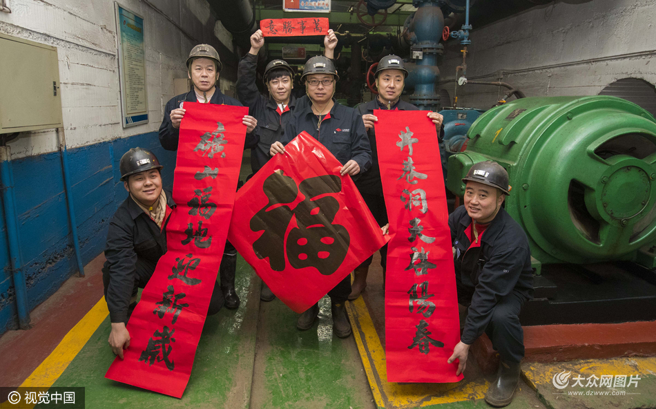 2017年01月23日,山東省濟南市東部的濟鋼鋼城礦業(yè)公司-360米礦井內(nèi),采礦車間的礦工們張貼對聯(lián)、福字,喜迎新春佳節(jié)的到來。