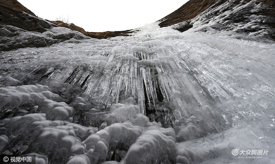 2017年1月24,山東省日照市五蓮縣七連山風(fēng)景區(qū)內(nèi),受持續(xù)低溫天氣影響,一處名叫大滴水的高山溪流出現(xiàn)冰瀑奇觀。數(shù)十米高的滴水溪流凝結(jié)成冰,形成冰瀑奇觀,整個(gè)山澗被晶瑩剔透的冰瀑覆蓋,銀裝素裹,氣勢(shì)恢宏,吸引了眾多游客和攝影愛(ài)好者前來(lái)游玩觀賞。