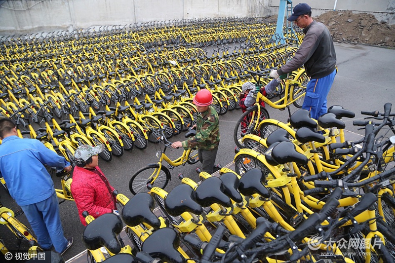 2017年4月10日,山東泰安,許多市民發(fā)現(xiàn)街頭多了一排排“小黃車”。這些“ofo共享單車”在4月9日晚上11時(shí)左右開始在泰城各主要街道進(jìn)行投放。一夜之間,小黃車遍布泰安街頭。相關(guān)媒 體從泰安市公用事業(yè)管理局了解到,這次“ofo共享單車”進(jìn)入泰安未經(jīng)過任何審批,擅自利用人行道、盲道等城市公共設(shè)施進(jìn)行營(yíng)利性經(jīng)營(yíng)行為,影響市民出行。10日上午,泰安城管部門下達(dá)清理通知后,下午2點(diǎn)開始集中清理道路兩側(cè)隨意擺放的ofo小黃車。千余輛”ofo共享單車”投放不到一天便被統(tǒng)一清理存放進(jìn)行證據(jù)保存。