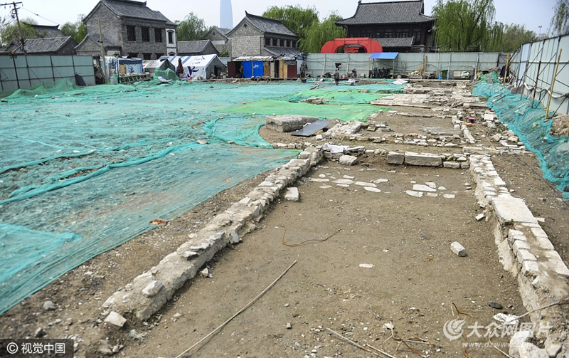 2017年4月11日,在山東濟南明府城百花洲整治工程施工中,發(fā)現一處明代“泰山行宮”遺址(又稱碧霞宮)?脊湃藛T發(fā)掘清理出房址5座、碑額2通、石雕赑屃2只及少量瓷片、建筑構件。