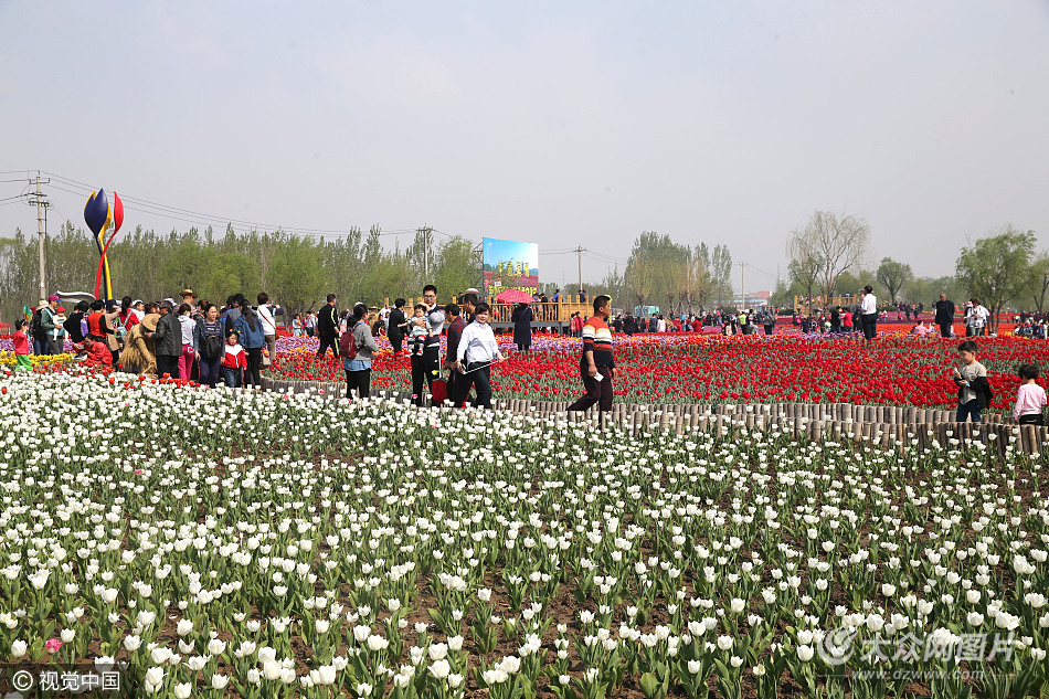 2017年4月15日,山東濱州,游客在秦皇河公園荷蘭風(fēng)情村觀賞盛開(kāi)的郁金香。當(dāng)日,為期半個(gè)月的山東濱州第四屆國(guó)際郁金香文化節(jié)開(kāi)幕,位于山東省濱州經(jīng)濟(jì)技術(shù)開(kāi)發(fā)區(qū)的秦皇河公園荷蘭風(fēng)情村的金色牛津、純金、水晶屋、白日夢(mèng)、紫旗、橙色達(dá)爾文等30多個(gè)品種300多萬(wàn)株各色郁金香競(jìng)相綻放,吸引眾多游客前來(lái)觀賞。