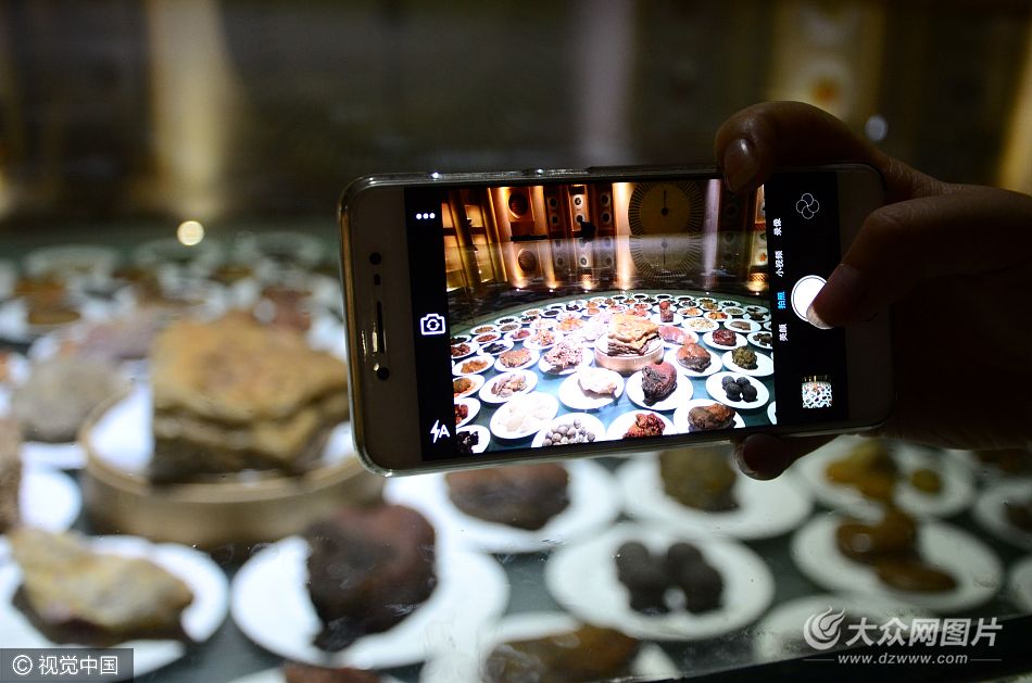 2017年4月24日,山東省濰坊市,一景點(diǎn)內(nèi)現(xiàn)象形石仿生菜肴“齊民大宴”,各類菜肴均由奇石做成,形象逼真,網(wǎng)友稱忍不住想咬一口。