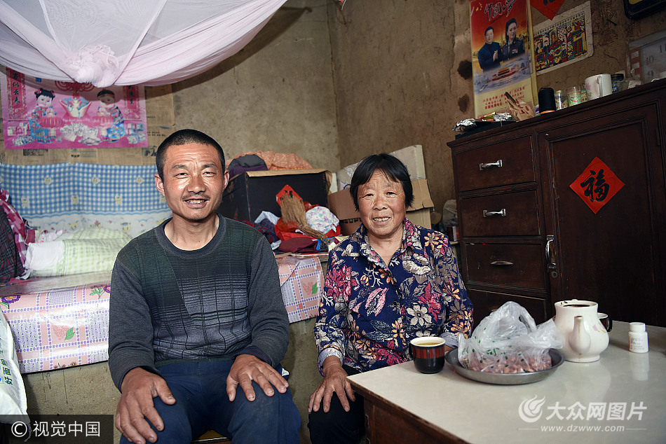 2017年5月22日,山東省日照市東港區(qū)香河街道范家河村,64歲的村民丁元桂干完農(nóng)活回到家,剛剛放下農(nóng)具,36歲的腦癱兒子平愛(ài)鋒就用含混不清、只有母子倆意會(huì)的話語(yǔ)喊媽媽喝水,休息。