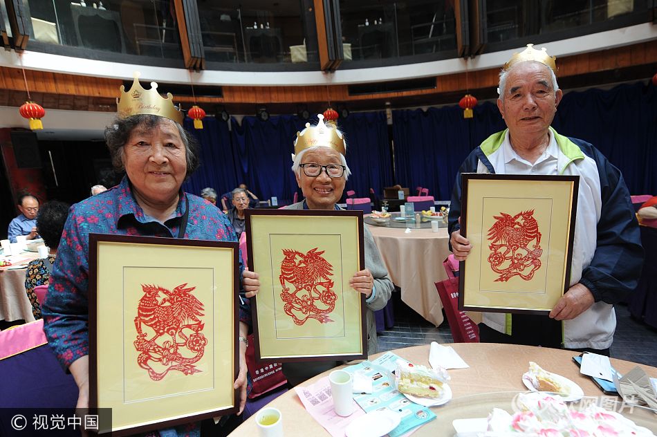 組照說明:2017年5月25日,山東省青島市,“鄰居節(jié)”在市區(qū)一路演繹溫情,傳遞友愛民風。在齊魯文化創(chuàng)意產(chǎn)業(yè)園里,以“情系浮山所·鄰里一家親”為主題的香港中路街道“鄰居節(jié)”上,三位年過八旬同為五月生日的老壽星度過了一個難忘的生日派對。