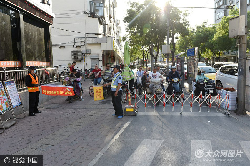 5月26日,在濟南山大北路二環(huán)東路路口,4個方向的非機動車道路口停車線上均多了一個伸縮護欄、一條攔阻繩,攔阻繩上寫著“不要闖紅燈 不要越線停車”,不少非機動車被攔在護欄后,等待綠燈時放行通過。按照事前約定好的分工,路口的協(xié)勤和文明交通志愿者一位操作護欄,一位操作攔阻繩,每當黃燈時便開始準備,紅燈時拉開,阻止行人、非機動車闖紅燈、越線停車。攔阻繩和伸縮護欄設置后,市民遵章守法的概率大大提高,經(jīng)過勸阻提示,市 民了解了自己應該如何遵守交通秩序,路口的交通情況得到了改善。