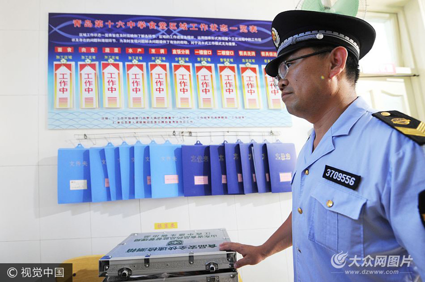 6月5日,即將進(jìn)入“高考季”,青島市市北區(qū)食藥局進(jìn)入學(xué)校展開食品安全排查活動(dòng)。圖為食藥局工作人員在現(xiàn)場介紹快速檢測設(shè)備。