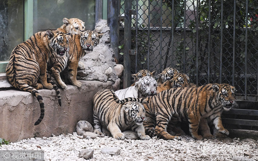 10月17日,濟(jì)南野生動(dòng)物世界今年誕生的12只小老虎集中亮相,霸氣模樣吸引許多游客駐足觀賞。據(jù)悉,濟(jì)南野生動(dòng)物園今年共繁育成活26只小老虎,其中2只是“虎中極品”金虎。