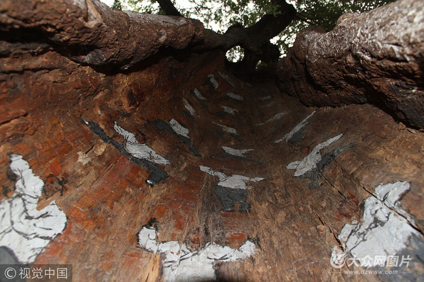 10月25日,在濟(jì)南大明湖景區(qū)內(nèi),一棵大樹樹洞里藏“武林秘籍”,描繪的人物惟妙惟肖,栩栩如生,招式爐火純青,吸引眾多游客留步觀看。