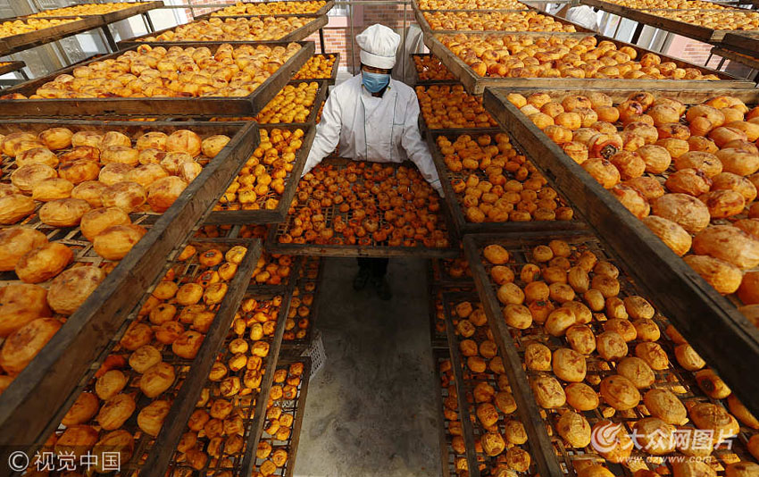 霜降過(guò)后,臨沂市沂南縣的2萬(wàn)余畝柿子喜獲豐收,農(nóng)民們忙著加工柿餅,一派豐收景象。當(dāng)?shù)剞r(nóng)民把收獲的柿子經(jīng)過(guò)削皮、去蒂、碳烤、風(fēng)干、揉壓等工序后加工成柿餅,出口韓國(guó)、日本等國(guó)家,成為山區(qū)農(nóng)民增收致富的重要渠道。
