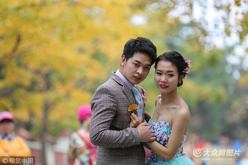 2017年11月1日,新人在青島八大關(guān)拍婚紗照。