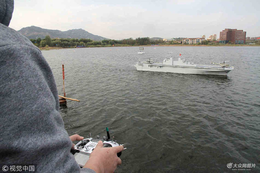2017年全國航海模型錦標(biāo)賽暨青島國際航海模型公開賽11月3日在青島西海岸新區(qū)中德生態(tài)園開賽。這是該項(xiàng)國家級賽事首次在青島舉辦,來自中國20余個(gè)省、市及香港、澳門特別行政區(qū)的26支隊(duì)伍展開激烈競逐。圖為參賽選手操縱著各類航海模型呈現(xiàn)出海戰(zhàn)實(shí)景。
