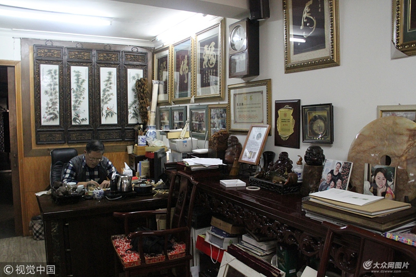 2017年11月14日,在山東濟(jì)南歷下區(qū)明湖小區(qū)社區(qū)內(nèi),67歲的張崇勝老人能用麥秸刻字作畫,自打開始堅(jiān)持了40年余年時(shí)間。