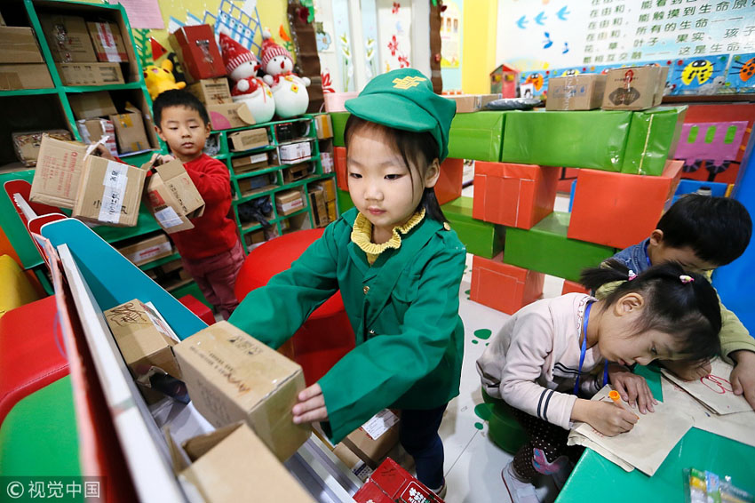 小朋友在進(jìn)行“快遞員”角色工作體驗(yàn)。
