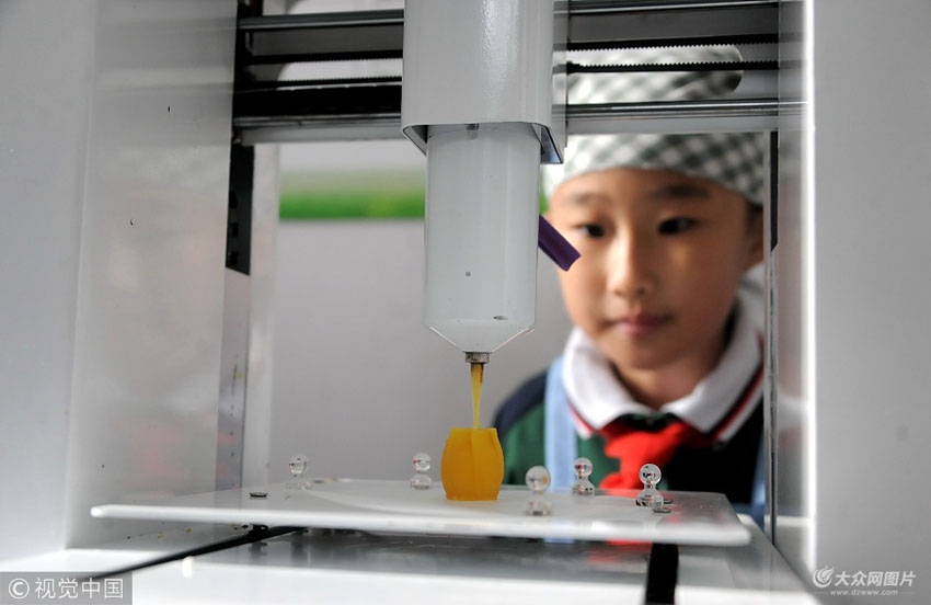 11月20日,在濟南市官扎營小學(xué),濟南天橋區(qū)首屆科技節(jié)在此舉行。學(xué)生們現(xiàn)場展示了3D打印美食、用水果演奏的樂器,熟練操控?zé)o人機以及平衡車,還利用電腦編程遙控機器人跳舞,以及用機器人寫字和搬東西。