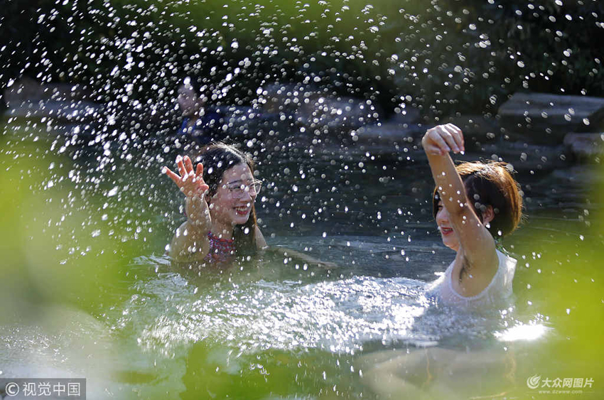 游客在臨沂市沂南縣智圣湯泉度假村溫泉池內戲水。