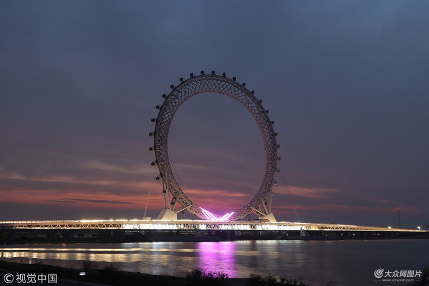 2017年11月27日,山東省濰坊市,位于渤海灣入?诘陌桌撕幽μ燧喺谶M行亮化施工。