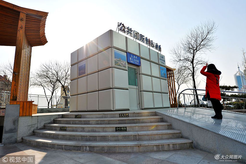 11月30日,在青島市棧橋景區(qū)和火車站之間,一座外形酷似游戲玩具“魔方”的公共衛(wèi)生間吸人路人眼球,夜晚則變身為亮化“魔方”,成為海濱景區(qū)一件美麗的藝術品,并經(jīng)常有游客以此為背景拍照。