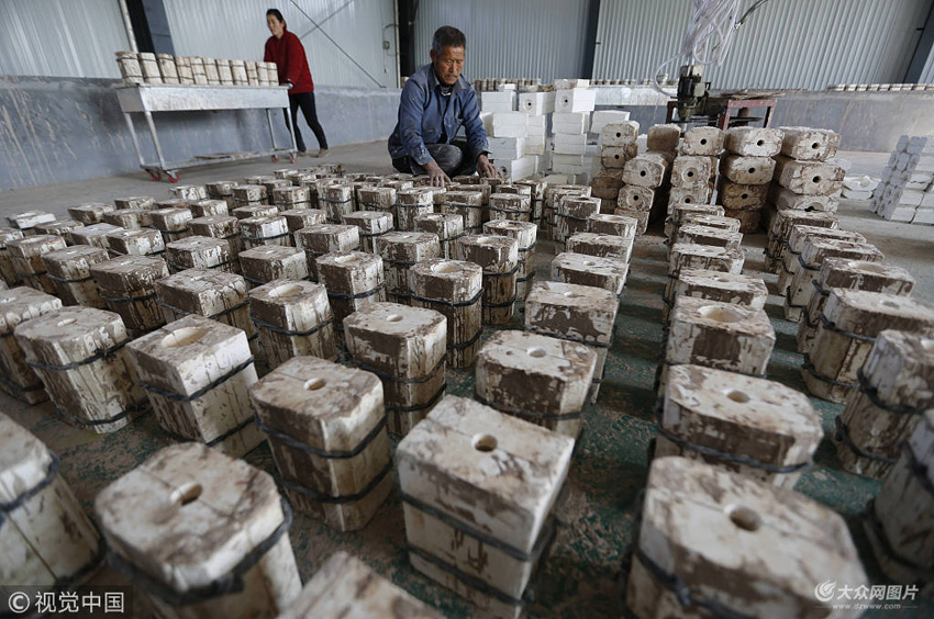 沂南縣銅井鎮(zhèn)新王溝村,農(nóng)民在擺放灌注好泥漿的模具。