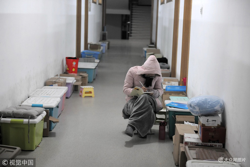 12月1日夜,在山東財經(jīng)大學(xué)舜耕校區(qū),考研學(xué)生們在挑燈夜讀,備戰(zhàn)考研。 離考試還有20天的時間,“考研族”就像上緊弦的發(fā)條,一刻不得閑。夜幕里的教學(xué)樓內(nèi)仍舊書聲瑯瑯、人影幢幢。為了抓緊最后的時間復(fù)習(xí),學(xué)生們裹著棉襖、披著棉被,坐在角落里、蹲在走廊中,捧著厚厚的書本面壁苦讀。
