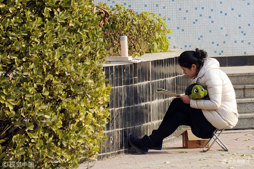 2017年12月12日,山東菏澤,考研學(xué)生遍布校園每個(gè)不起眼的角落。