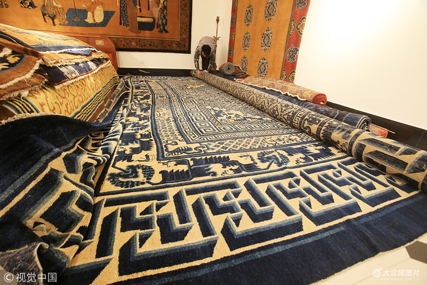 2017年12月26日,青島,錦地團(tuán)壽字紋栽絨地毯 6.16m×5.52m 清晚期 寓意萬(wàn)福萬(wàn)壽吉祥綿亙。