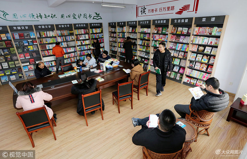 12月27日,棗莊,光明路街道為有效探索全民閱讀新途徑,聯(lián)合棗莊市新華書店在轄區(qū)內(nèi)的東盛社區(qū)創(chuàng)辦了無人值守的“共享書吧”,免費供人們閱讀,讀者如需購買可自覺地通過手機掃描二維碼支付書款。在提倡閱讀的同時,營造誠實守信的良好社區(qū)氛圍。