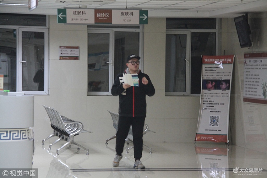 2017年12月27日,濟(jì)南,在山師東路上,不少大學(xué)生來醫(yī)院蹭坐備戰(zhàn)期末考試。