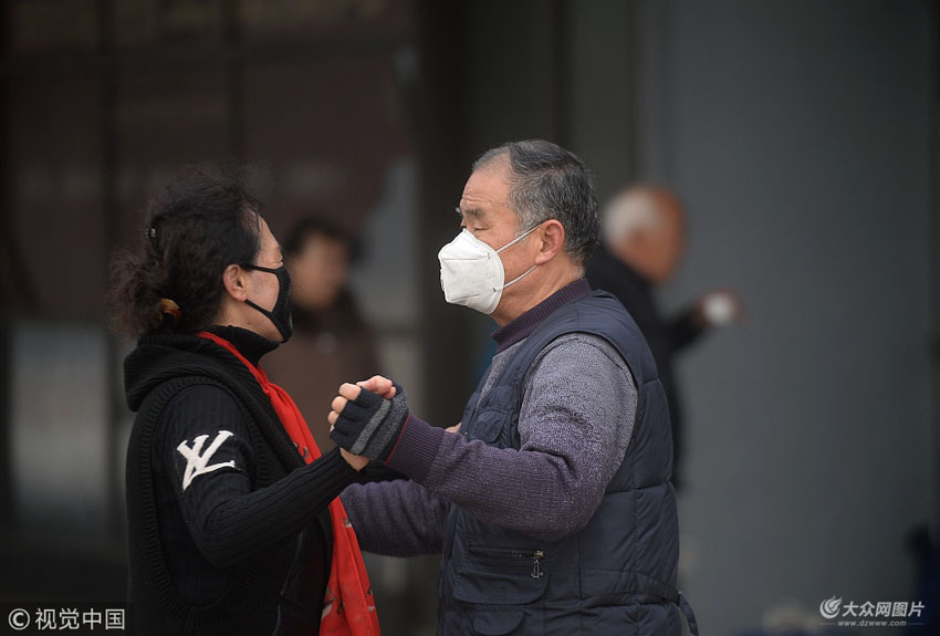 12月30日,濟南市,泉城持續(xù)大霧天氣,市區(qū)一片霧蒙蒙,空氣質(zhì)量達到了重度污染。中午時分耀眼的太陽躲在大霧中,變成了灰白色,老人們戴上口罩在霧中跳舞休閑。