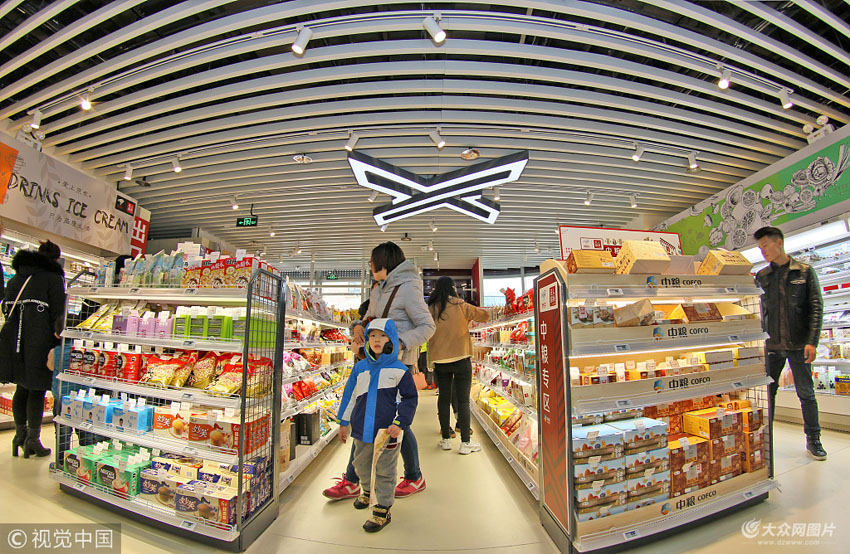 12月30日,顧客在京東X無(wú)人超市煙臺(tái)大悅城店選購(gòu)商品。