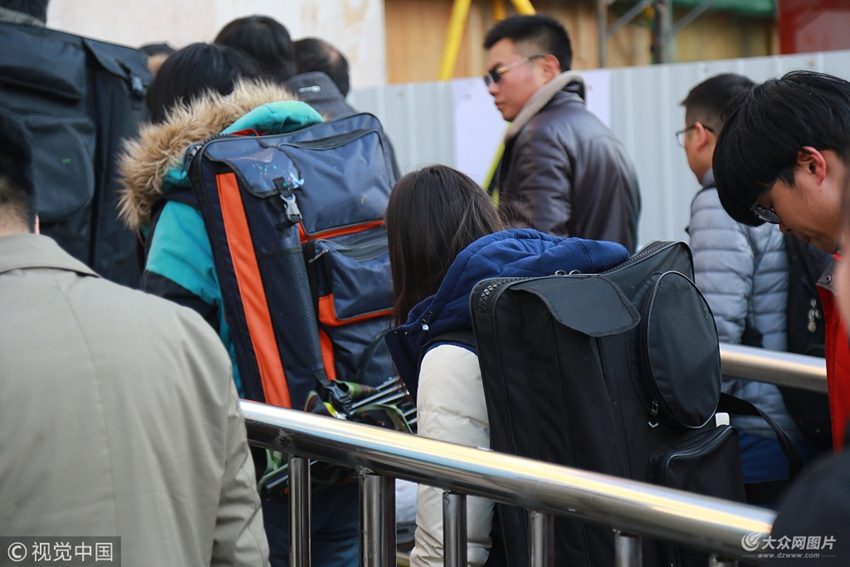 2018年1月5日,濟南,藝考即將拉開帷幕,在火車站看到很多背畫板拎著大行李考生在寒風(fēng)趕火車,奔向藝考的城市。