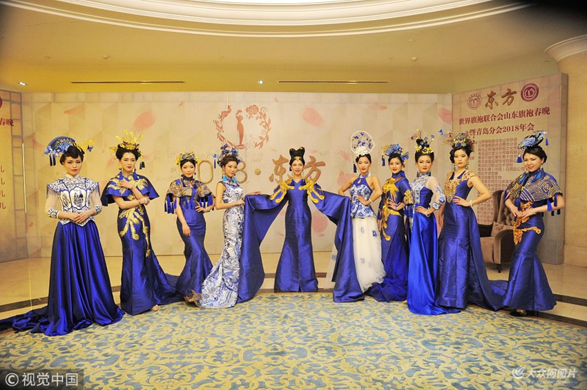 2018年1月6日晚,青島,世界旗袍聯(lián)合會(huì)山東旗袍春晚《東方》在青島上演。