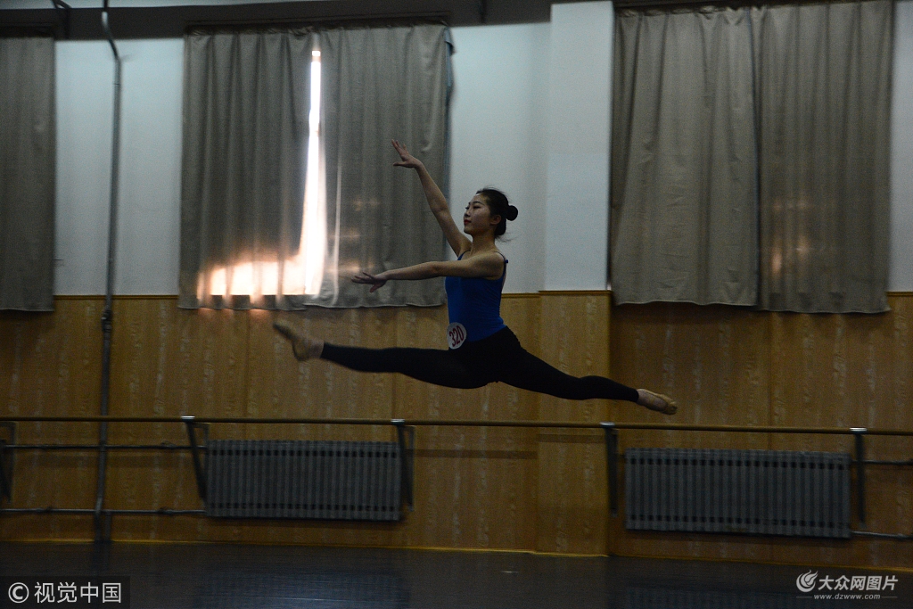 2018年2月26日,濟(jì)南。山東藝術(shù)學(xué)院舞蹈表演專業(yè)校考進(jìn)行復(fù)試階段,在候考廳,考生們?cè)诩泳o訓(xùn)練。