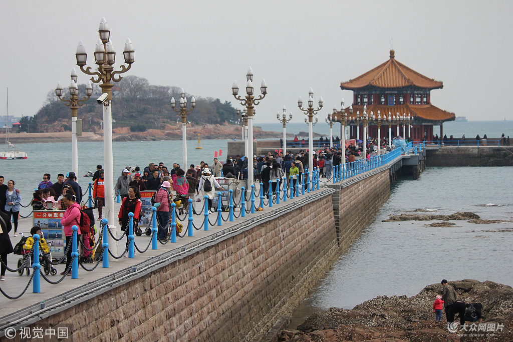 2018年4月23日,游人在青島棧橋景區(qū)趕海休閑。圖片作者:黃杰顯/視覺中國