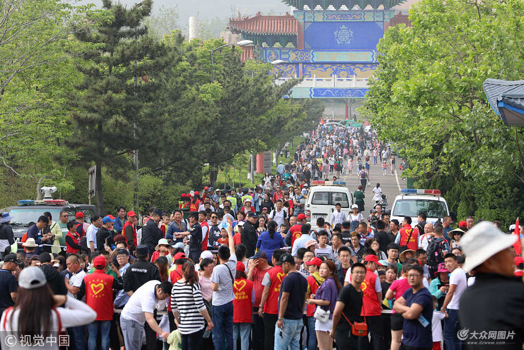 2018年6月10日,在山東威海西霞口野生動(dòng)物自然保護(hù)區(qū)里拍攝的游客。圖片作者:林海珍/視覺(jué)中國(guó)