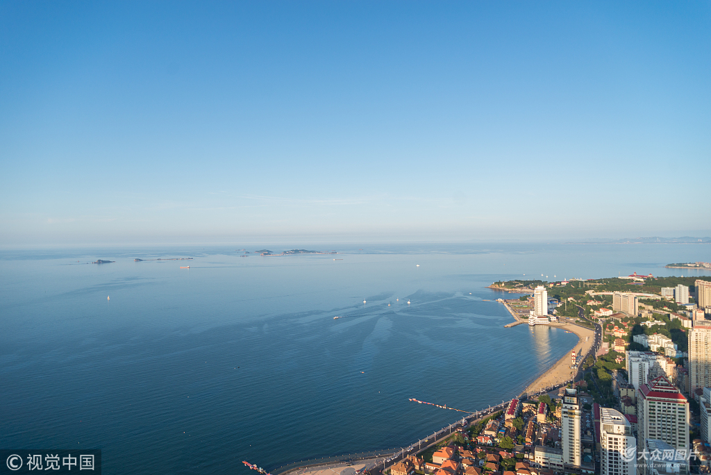 2018年6月11日,煙臺結(jié)束了連續(xù)陰雨大霧天氣,撥開烏云露出了幾日不見的藍天,白天明媚的陽光照的人睜不開眼睛,能見度特高遠處城市島嶼清晰可見,碧海藍天,不少市民下班后來到濱海廣場散步賞景。