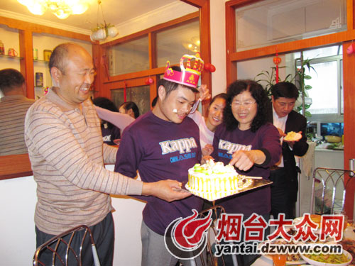 10月31日,姚俊家里來了兩位特殊的客人:北京的義工“蘊(yùn)藏馨香”蔣蘊(yùn)香和青島的“英俊船長”丁沖,碰巧趕來一起為他過生日。兩人之前在網(wǎng)上認(rèn)識了“月亮姐姐”許振珊,專程趕到煙臺來“取經(jīng)”。
