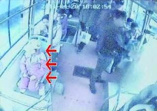劉漢格20日在公交車上的監(jiān)控畫面。 本報記者 杜洪雷 攝
