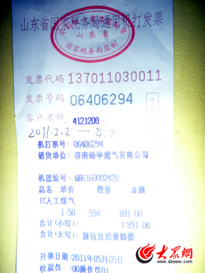 王女士說,無奈之下,自己讓朋友給交了費(fèi)。但拿到發(fā)票后,立刻產(chǎn)生了天方夜譚的感覺:2月2日到4月2日,竟然用了594立方氣,收費(fèi)達(dá)891元。王女士查詢了有關(guān)資料,按照這個(gè)收費(fèi),平均每天要用近10立方燃?xì),可以燒開水535的暖瓶(2升)。如果按照這個(gè)用量,每天要不斷地?zé)?0多個(gè)小時(shí)的開水。