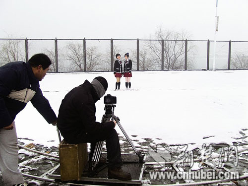 擔(dān)任導(dǎo)演的是該校2007屆畢業(yè)生殷博。殷博大學(xué)期間拍攝的電影《星星相愿》曾獲“武漢大學(xué)生DV大賽二等獎(jiǎng)”。冰天雪地里,工作人員搬來設(shè)備,在雪地里鋪設(shè)攝影軌道,架設(shè)攝像機(jī)。兩個(gè)女大學(xué)生經(jīng)過化妝后走進(jìn)雪地,頂著寒風(fēng)在攝像機(jī)前放聲歌唱:“你說,我不是故意那么倔強(qiáng),選擇了陌生的方向;你是否和我一樣,有過不被欣賞的夢(mèng)想……”(楚天都市報(bào)記者徐嘯寒?dāng)z 通訊員張志成) (來源:荊楚網(wǎng))