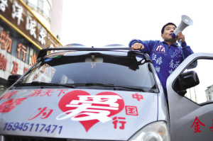 每到一座城市,他都會聯(lián)系當(dāng)?shù)孛襟w,“除了我自己征婚,還要宣傳我家鄉(xiāng)雙城市!