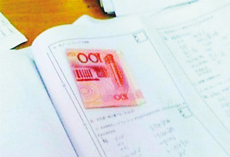 近日,在青青島論壇上一個名為《改卷子的時候發(fā)現(xiàn)空白處貼了100塊錢》的帖子很受關(guān)注,隨后記者聯(lián)系上了發(fā)帖的王老師。據(jù)王老師介紹,他是青島市一所中學(xué)的老師,前段時間,他在批改一次高中會考模擬試卷時,發(fā)現(xiàn)一份卷子中間夾了東西,翻到背面的時候發(fā)現(xiàn)一道試題的答題處竟然貼了一張百元大鈔,他將這張鈔票掀開發(fā)現(xiàn),答題處是一片空白。