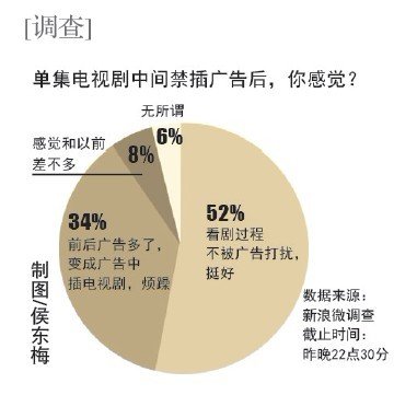 廣電總局在去年11月底下發(fā)的《〈廣播電視廣告播出管理辦法〉的補(bǔ)充規(guī)定》中要求,自2012年1月1日起,各電視臺(tái)播出電視劇時(shí),每集電視劇中間不得再以任何形式插播廣告,同時(shí)將1月份列為“電視劇插播廣告專項(xiàng)監(jiān)管月”。
