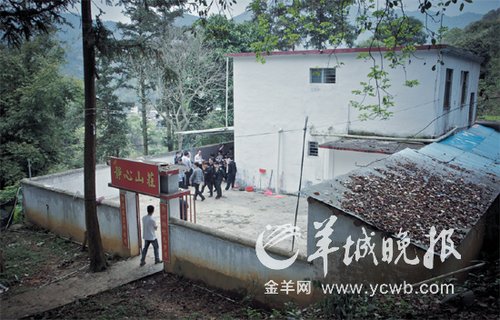 “靜心山莊”藏在羅浮山深處。從門外看,山莊和普通民宅并無二致,低矮的圍墻,簡陋的閘門, “靜心山莊”四個大字只在一張紅紙寫就,兩邊寫著“靜心排憂忘歲月”、“世塵不占待圣明”的對聯(lián)。“看到附近路邊的指示牌,還以為是什么‘國際大型會館’,找了幾次都沒找到,沒想到就這一座破房子! ”常來羅浮山旅游的黃先生告訴羊城晚報記者,他多次在附近游覽,都沒發(fā)現(xiàn)這座不起眼的小房子。