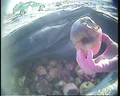 老板們還說,這些晾曬的桃肉都是經(jīng)過腌漬加工過的。而腌漬桃肉的地方就是路邊的這些露天水泥池。記者在路邊看到:一個(gè)大水泥池里泡著5萬斤左右的桃肉,旁邊垃圾遍地,污水橫流,骯臟不堪。掀開蓋著水泥池的塑料膜,里面浸泡著的桃肉,有很多已經(jīng)腐爛變質(zhì)。