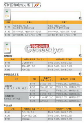根據(jù)北京市目前公布的兩套聽(tīng)證方案,第一檔的月度基礎(chǔ)電量分別為230度和240度,電價(jià)為現(xiàn)行標(biāo)準(zhǔn):0.4883元/度;超過(guò)者再分為兩檔,每度電分別上漲0.05元和0.30元。